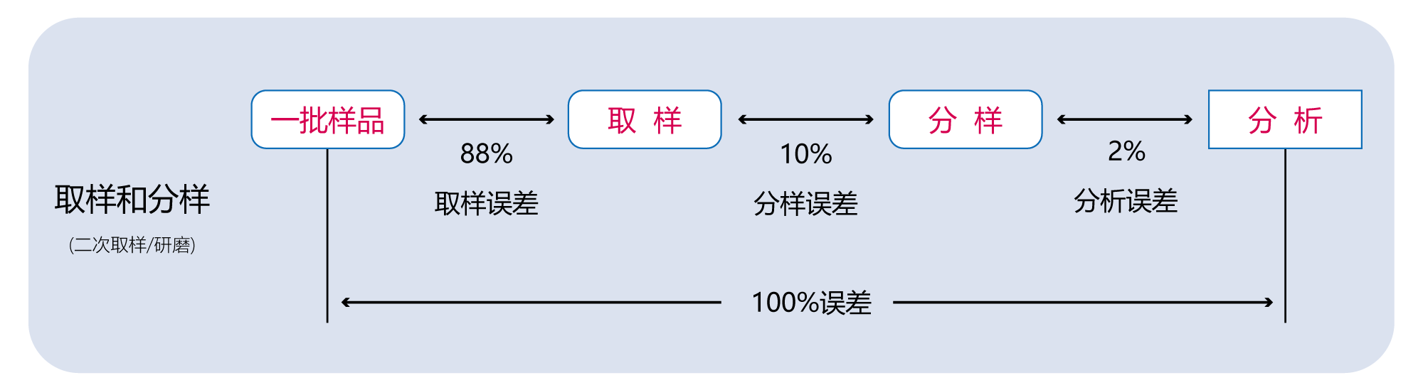 真菌毒素的檢測誤差一直是糧油、飼料等領域令檢驗化驗人員非常頭疼的問題,有時甚至會達到百分之幾百的偏差,誤差的來源和影響因素非常之多,如檢測產品本身、操作流程和細節掌握程度、實驗環境和條件、不同種類樣品的基質效應等,其中影響最大的一個因素--抽樣。