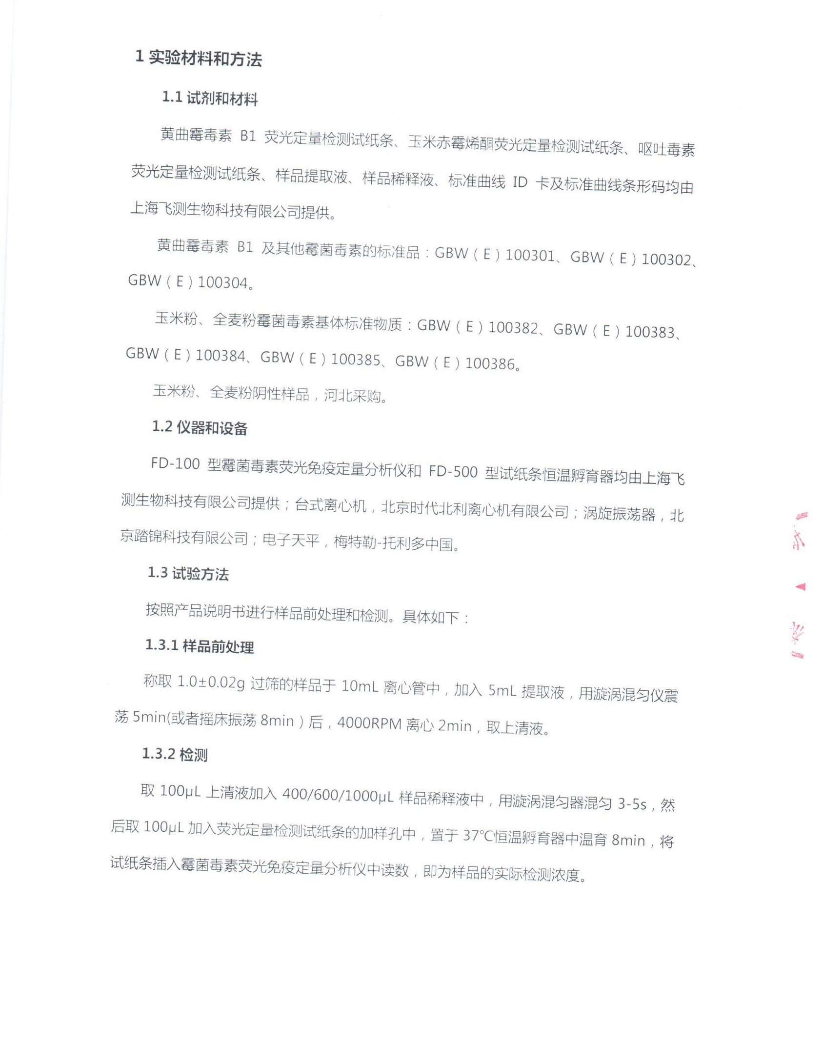 1.黃曲霉毒素B1:玉米樣品加標回收率109%~119%,變異系數小于13.55%,檢測玉米粉標物正確度120%;