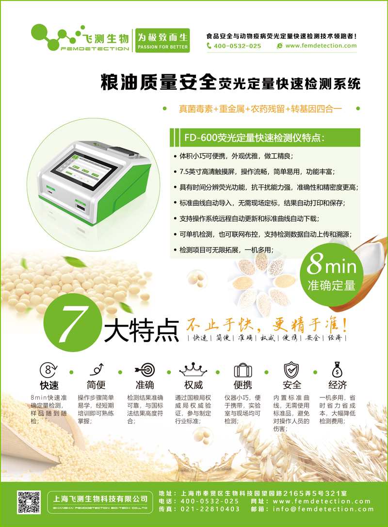 上海飛測生物科技有限公司攜霉菌毒素+重金屬+農藥殘留 三合一熒光定量快速檢測設備參展,展位號:C34,熱烈歡迎新老客戶朋友來坐坐!